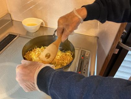 ゆっくり、ゆっくり弱火で焦げないように、丁寧に木べらを使って混ぜて下さいました。