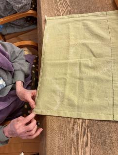お正月に向けてランチョンマットを新調しましょうと、年末から布を染め、ご利用者に協力をしてもらいなが手縫いで縫製。