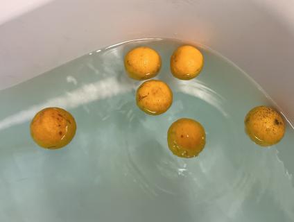 皆さんが健康で風邪などひかないようにと願いを込めて、冬至には少し早いですが柚風呂に入って頂きました♪