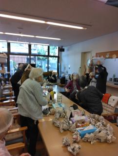 取り組む視線は真剣! 上肢を動かす運動にもなり、皆さん張り切っておられました。