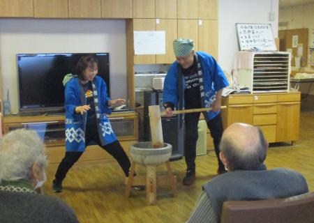 ご利用者の皆様の手拍子と掛け声と共に力強くお餅をつきました。
