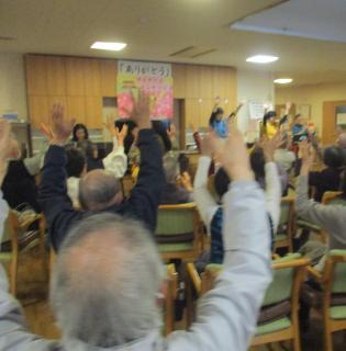 その後は、演奏に合わせて「四季メドレー」「ふるさと」などを一緒に歌いました。