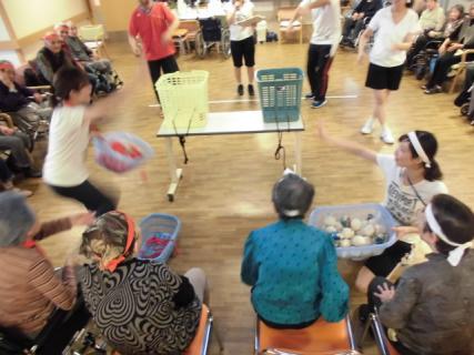 <玉入れ>も白熱し、たくさんの玉が両組のかごに入っていました(^^♪